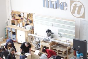 Wir kleben uns die Wohnung 1:1 auf den Boden (im Werksalon) und möblieren diese auch gleich mit selbstgemachten Kleinmöbeln mit professioneller Hilfe des Tischlermeisters Markus Papouschek.